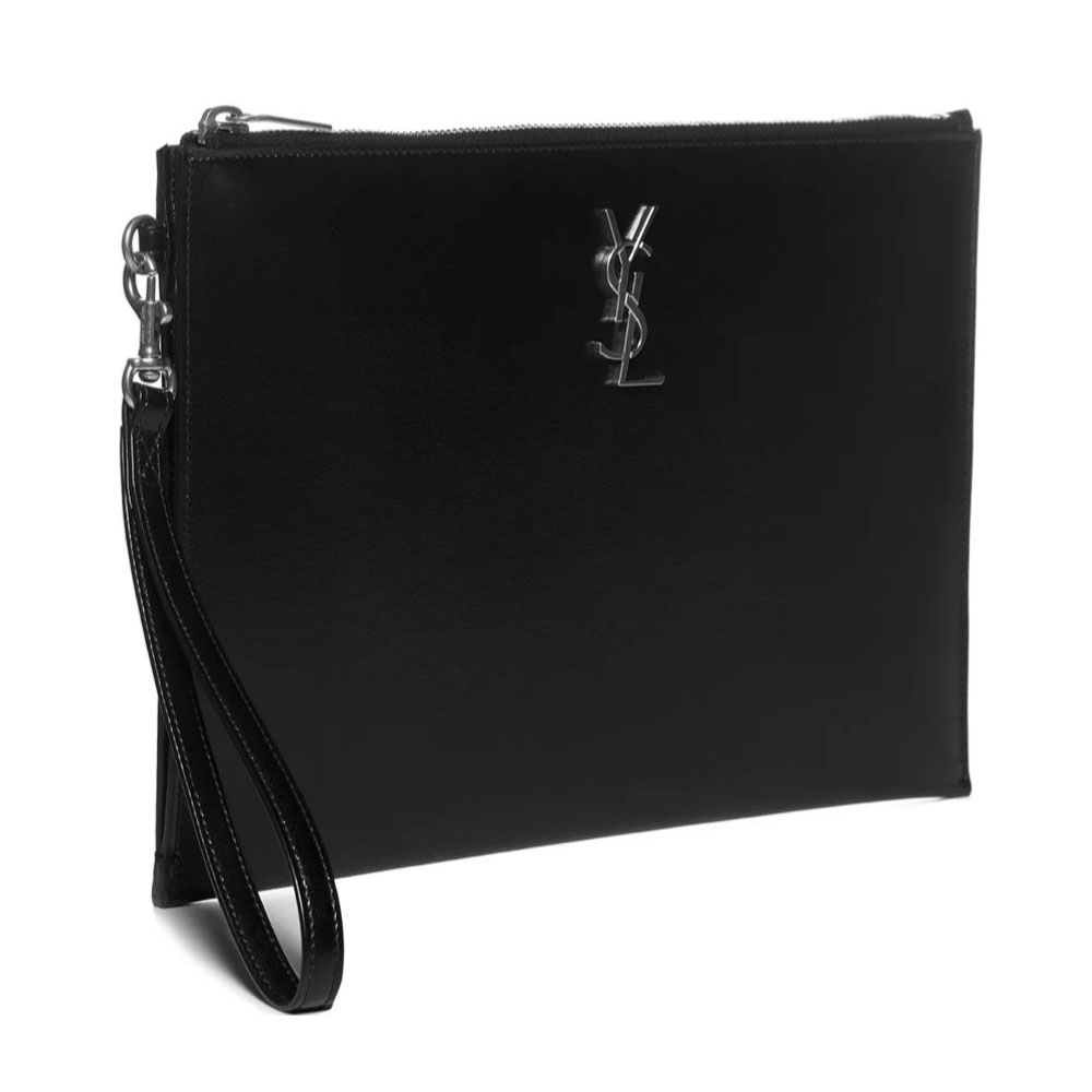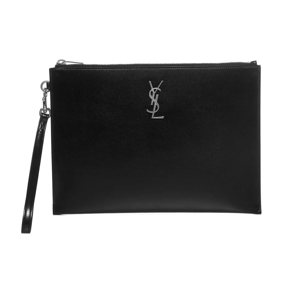 Saint Laurent Logo Plaque Zipped Clutch Bag